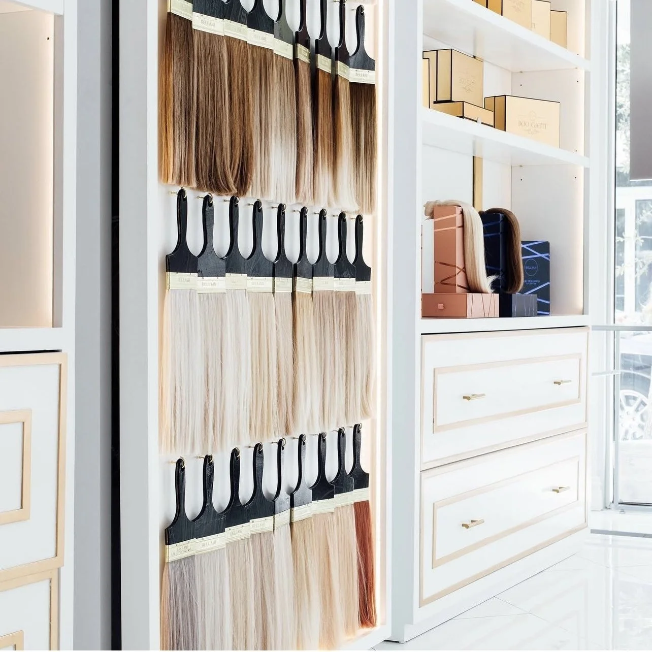We proudly have partnered with Bellami for all of your extension needs. BELLAMI extensions are made with 100% cuticle intact Remy hair that is ethically sourced. We offer K-tip, I-tip, Tape-in, and wefts, as well as being a distributor of halos and clip-ins